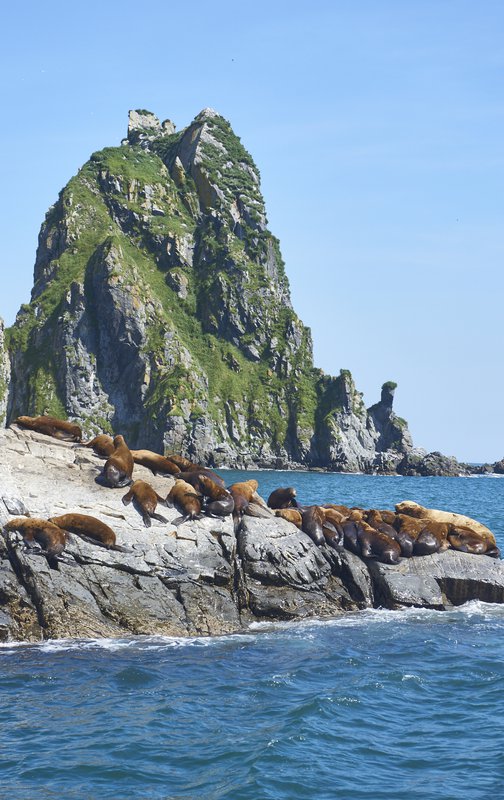 Далее наша цель, остров Старичков, где мы сможем наблюдать большое разнообразие морских птиц, дальневосточных нерп (ларга), а также местами непреступные и красивые скалистые берега. Становимся на якорь, часть группы отправляется кататься вокруг острова на резиновой лодке, а часть группы рыбачит, дегустирует камчатскую уху и крабов. Затем меняемся.